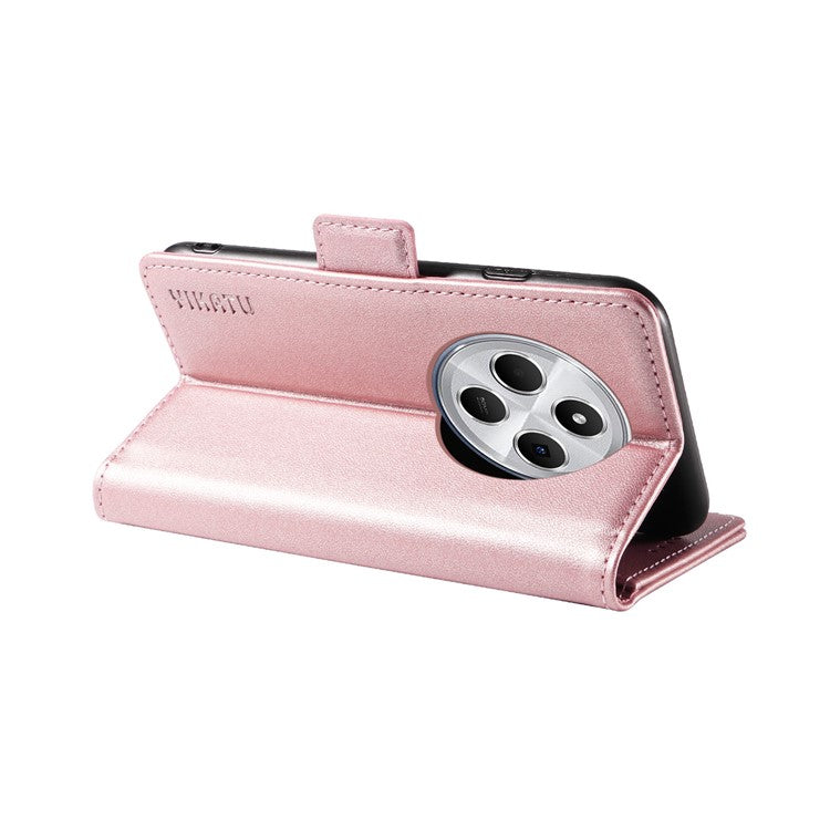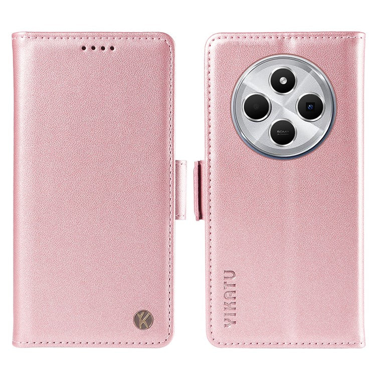 YIKATU YK-003 For Xiaomi Poco C75 4G / Redmi 14R 5G / 14C 4G Case Wallet Stand Leather Phone Cover Side Buckle - Rose Gold