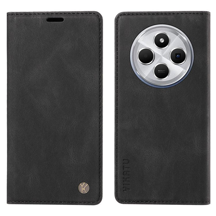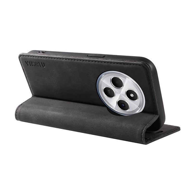 YIKATU YK-004 For Xiaomi Poco C75 4G / Redmi 14R 5G / 14C 4G Case Leather Skin-Touch Phone Cover Magnetic Auto-Absorbed - Black