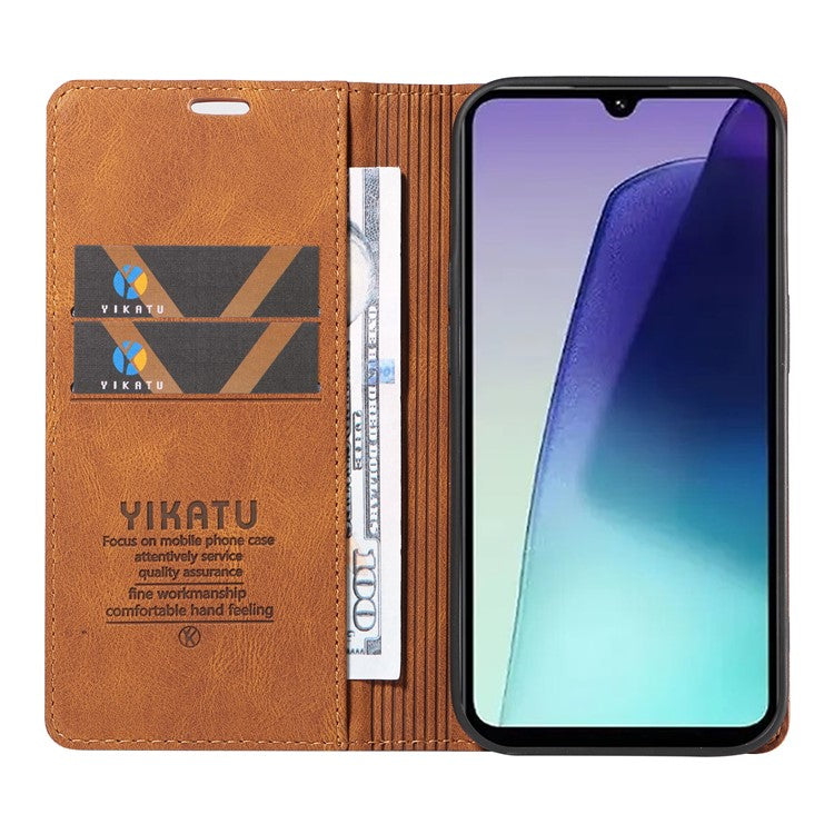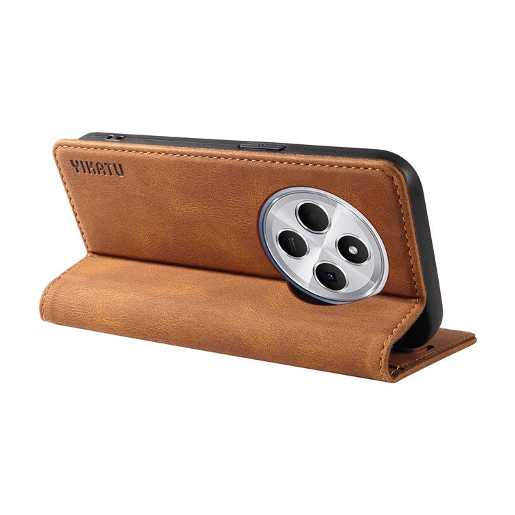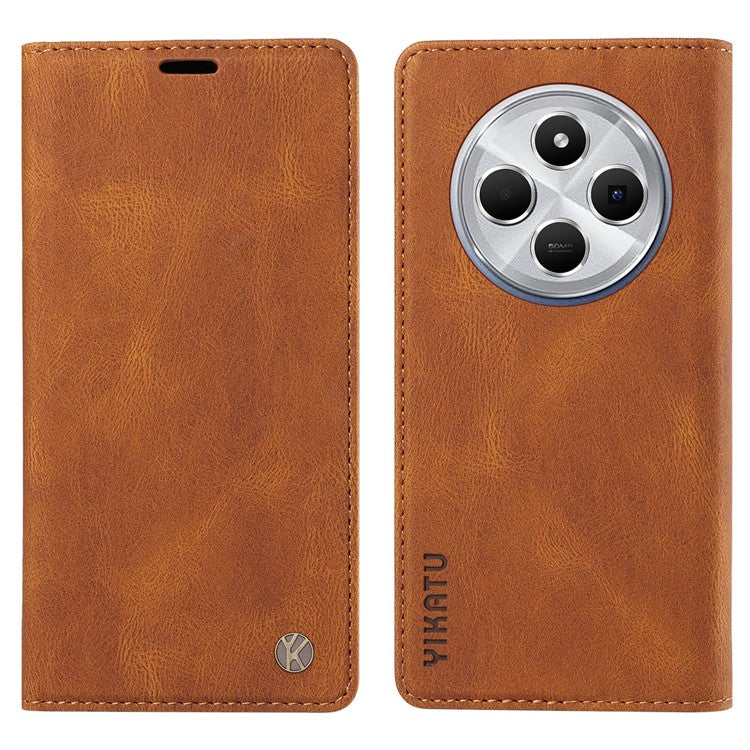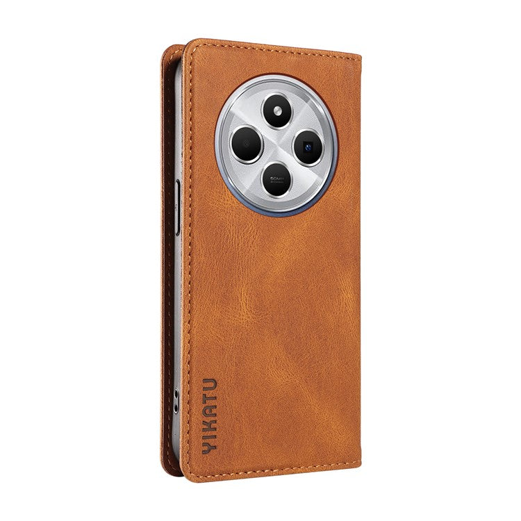 YIKATU YK-004 For Xiaomi Poco C75 4G / Redmi 14R 5G / 14C 4G Case Leather Skin-Touch Phone Cover Magnetic Auto-Absorbed - Brown
