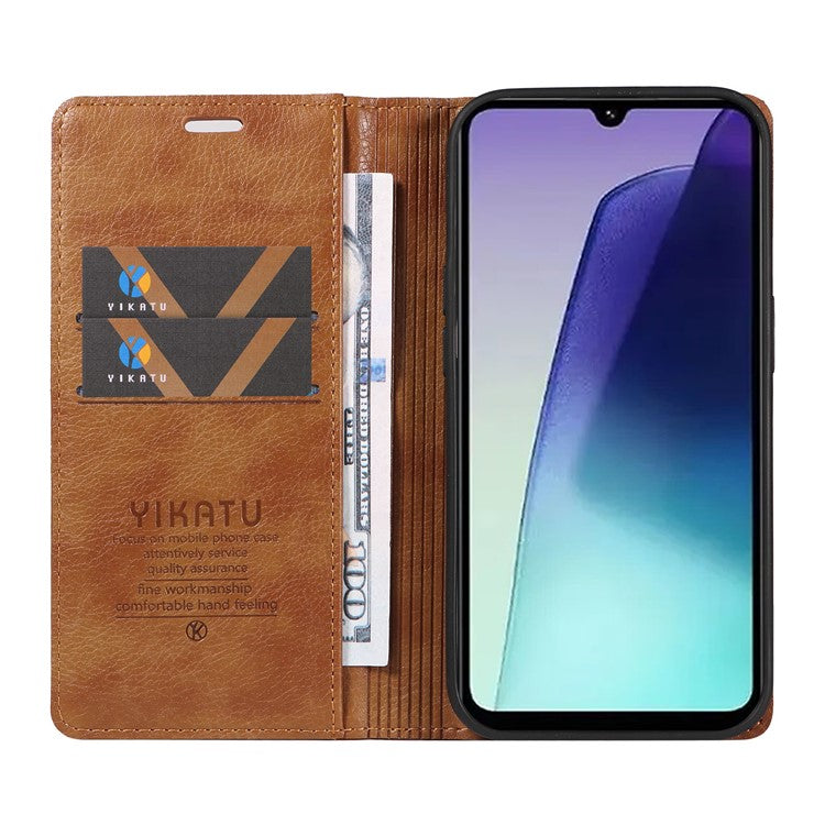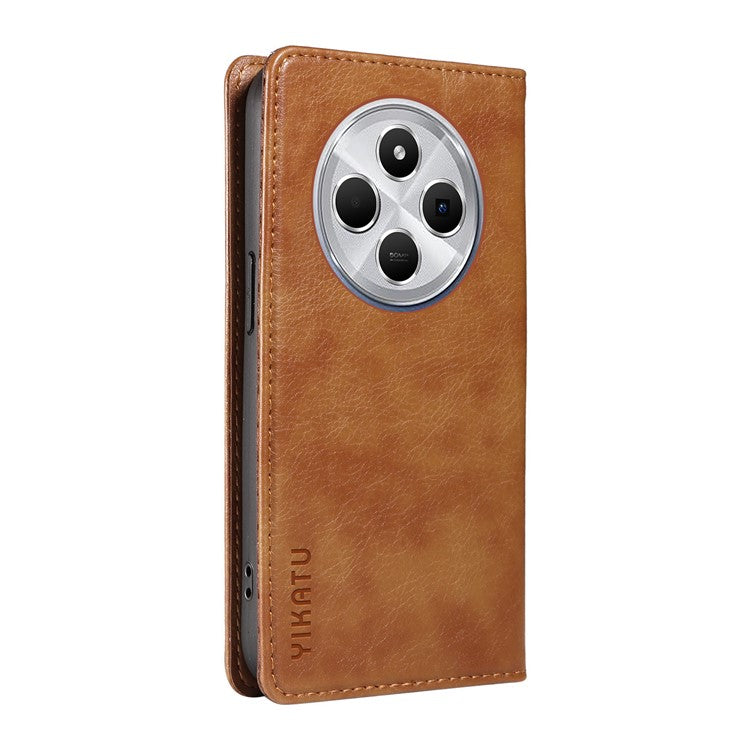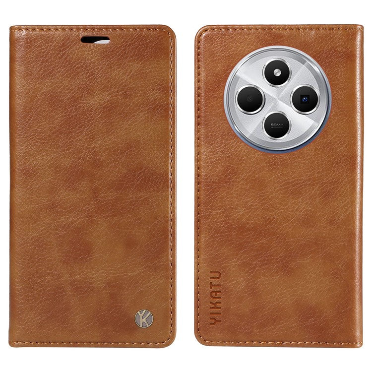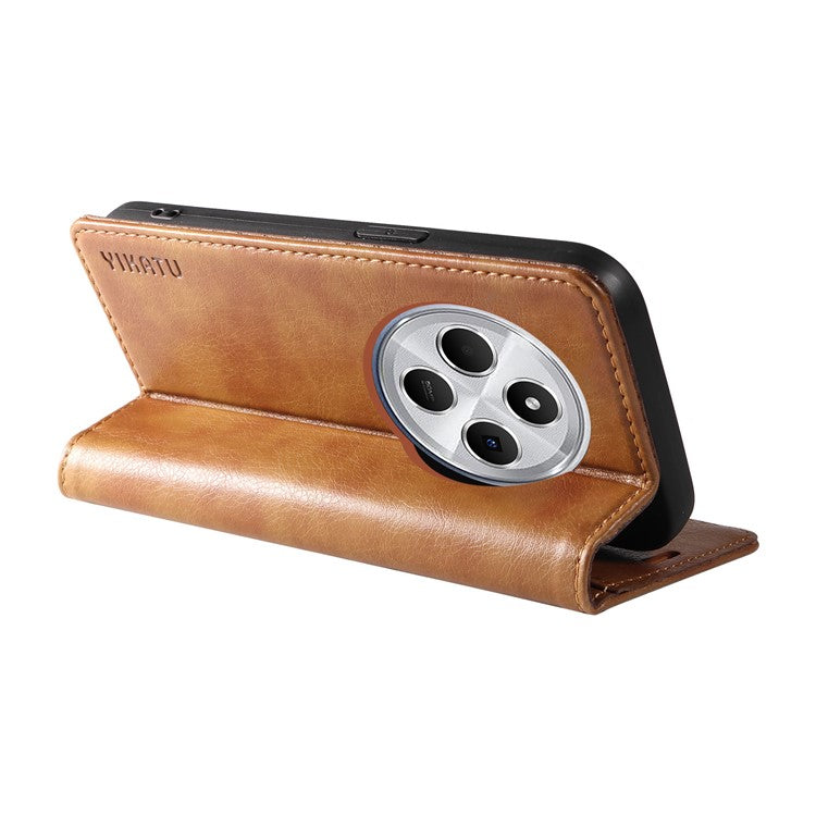 YIKATU YK-006 For Xiaomi Poco C75 4G / Redmi 14R 5G / 14C 4G Case Wallet Litchi Grain Leather Phone Cover Magnetic Auto-Absorbed - Brown