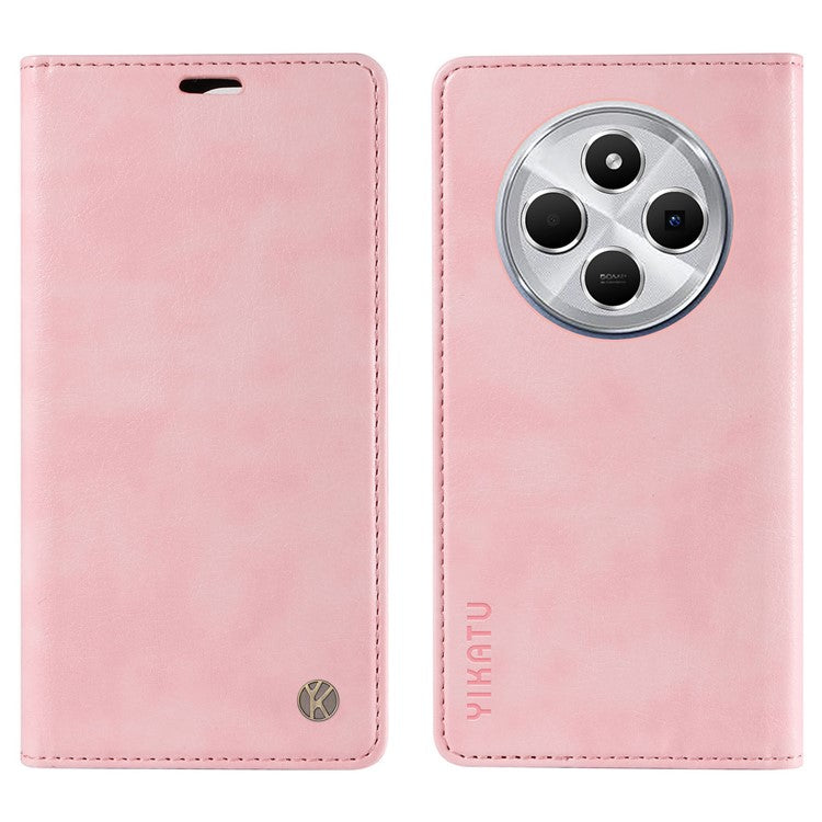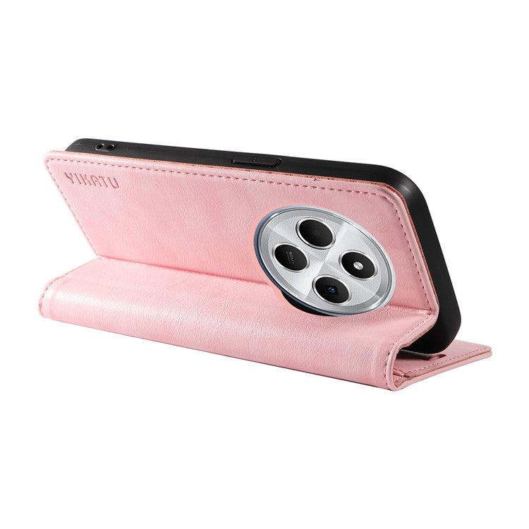 YIKATU YK-006 For Xiaomi Poco C75 4G / Redmi 14R 5G / 14C 4G Case Wallet Litchi Grain Leather Phone Cover Magnetic Auto-Absorbed - Pink