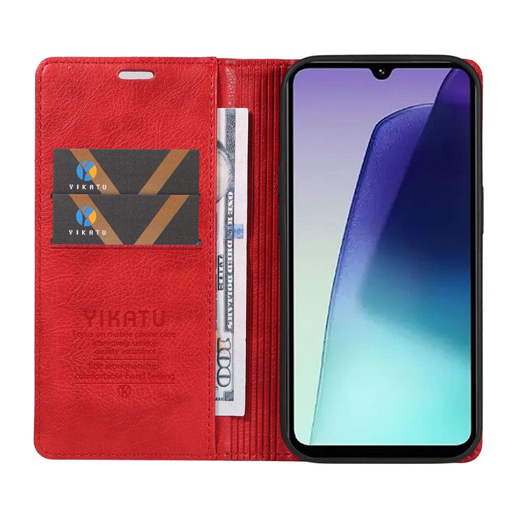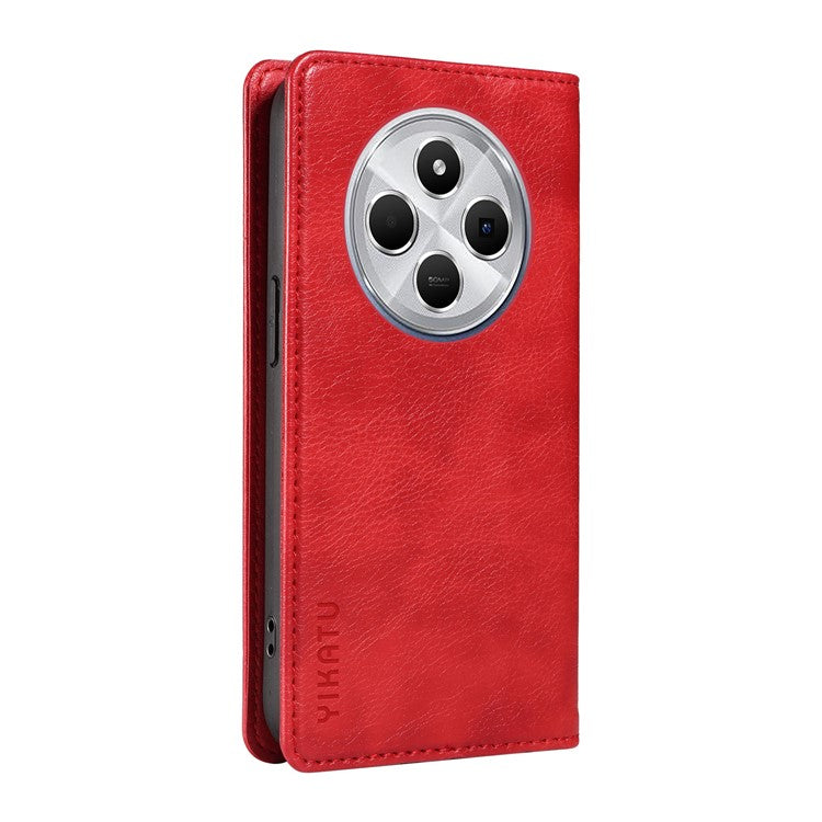 YIKATU YK-006 For Xiaomi Poco C75 4G / Redmi 14R 5G / 14C 4G Case Wallet Litchi Grain Leather Phone Cover Magnetic Auto-Absorbed - Red