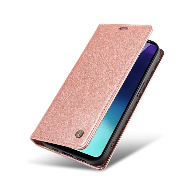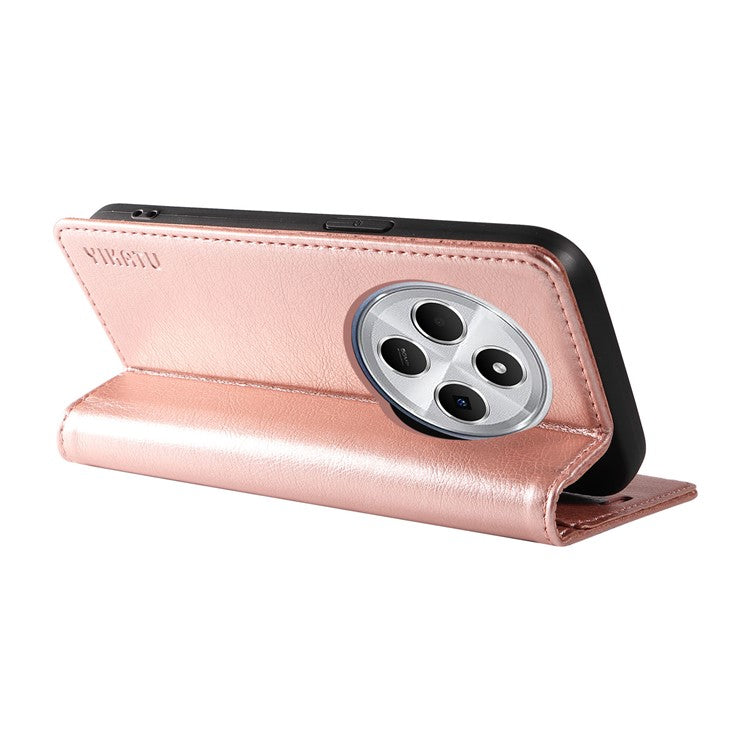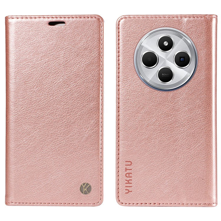 YIKATU YK-006 For Xiaomi Poco C75 4G / Redmi 14R 5G / 14C 4G Case Wallet Litchi Grain Leather Phone Cover Magnetic Auto-Absorbed - Rose Gold