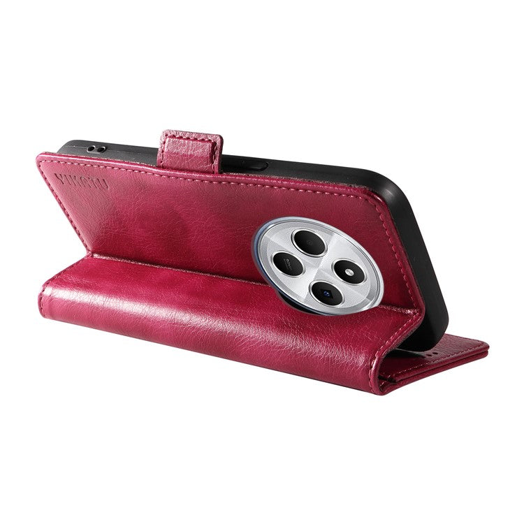 YIKATU YK-007 For Xiaomi Poco C75 4G / Redmi 14R 5G / 14C 4G Case Side Buckle PU Leather Phone Cover Litchi Texture - Wine Red