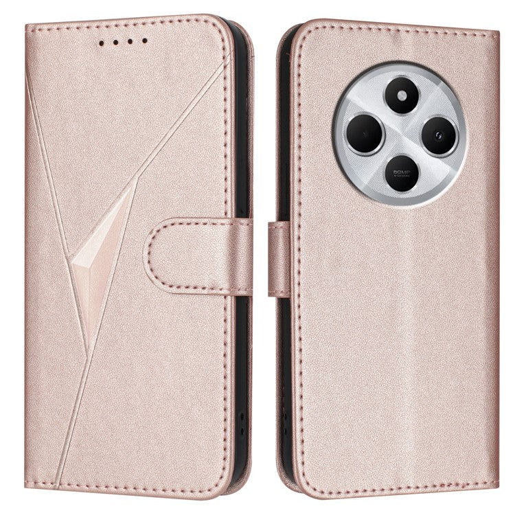 YX0090 For Xiaomi Poco C75 4G / Redmi 14R 5G / 14C 4G Case Triangle Imprint Leather Phone Cover with Lanyard - Rose Gold