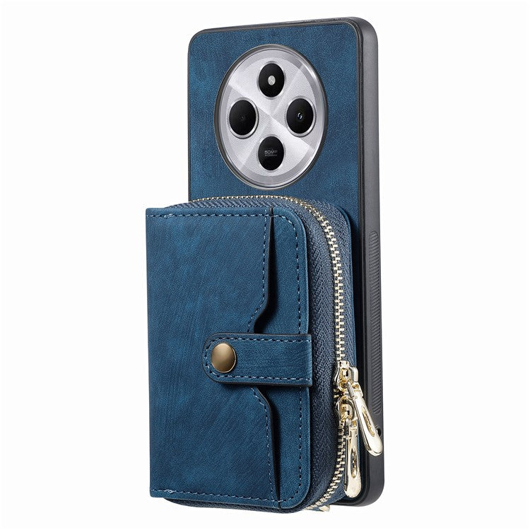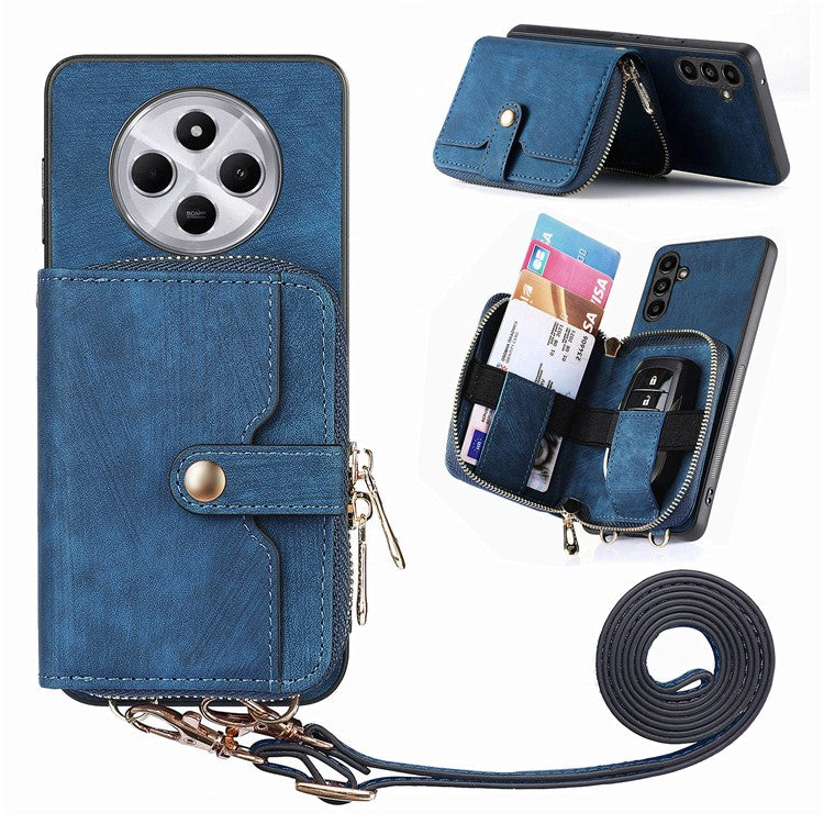 Zipper Wallet Phone Case For Xiaomi Redmi 14C 4G / 14R 5G / Poco C75 4G Leather Kickstand Back Cover with Shoulder Strap - Blue