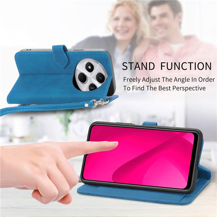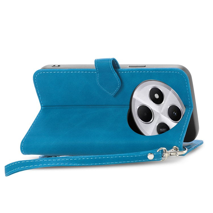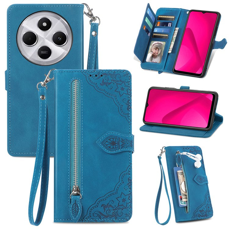 Zipper Wallet Phone Case For Xiaomi Redmi 14C 4G / 14R 5G / Poco C75 4G PU Leather Flower Imprint Phone Cover - Blue