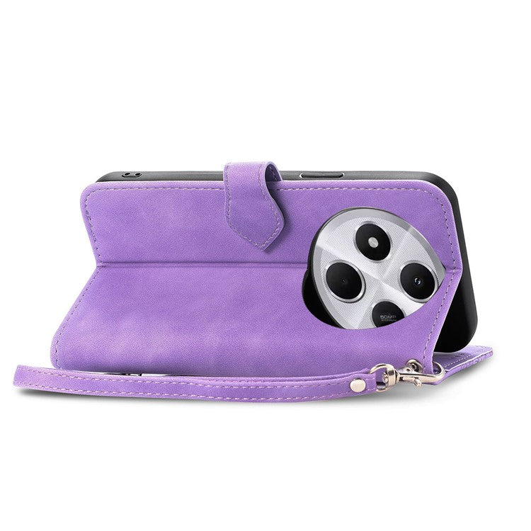 Zipper Wallet Phone Case For Xiaomi Redmi 14C 4G / 14R 5G / Poco C75 4G PU Leather Flower Imprint Phone Cover - Light Purple