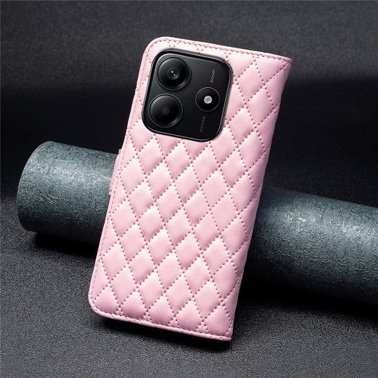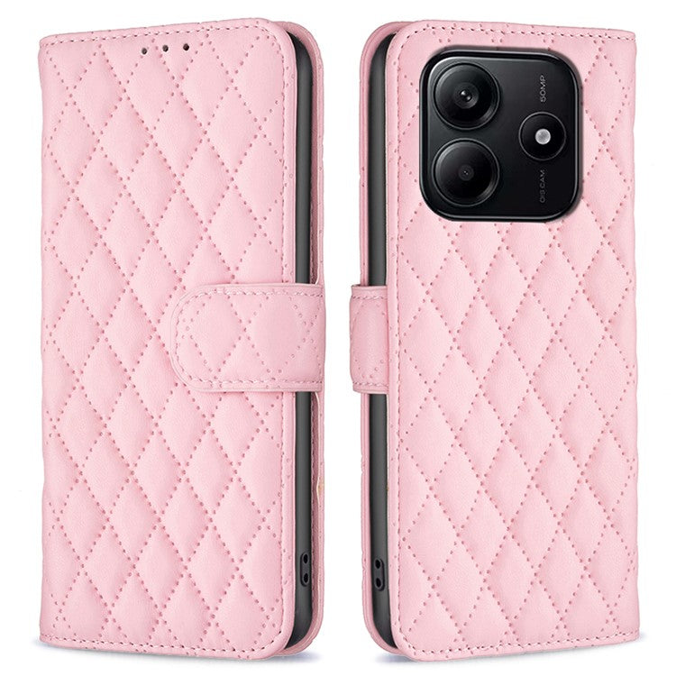 BINFEN COLOR BF Style-14 For Xiaomi Redmi Note 14 5G Case Rhombus Phone Leather Cover Stand - Pink