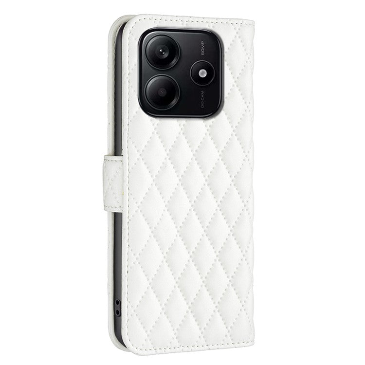 BINFEN COLOR BF Style-14 For Xiaomi Redmi Note 14 5G Case Rhombus Phone Leather Cover Stand - White