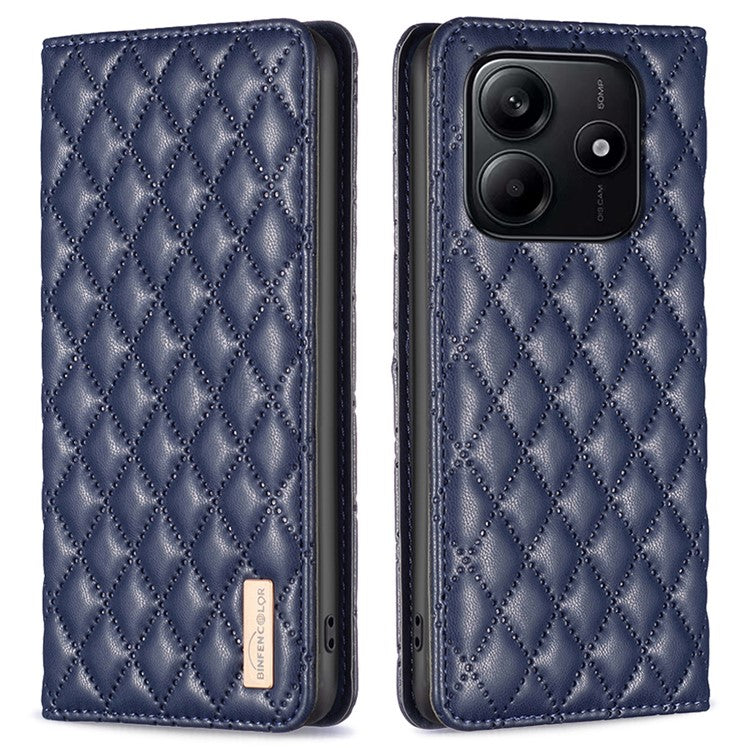 BINFEN COLOR BF Style-16 For Xiaomi Redmi Note 14 5G Case Card Slots Rhombus Leather Cover - Blue