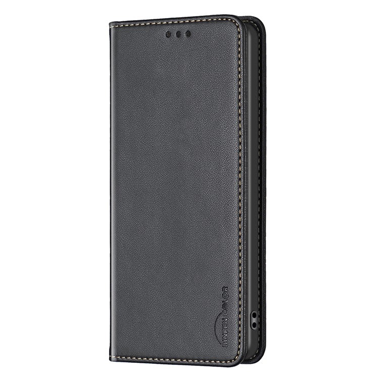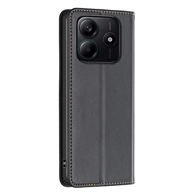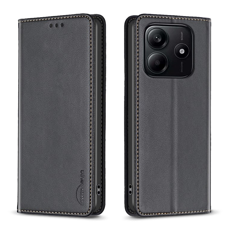 BINFEN COLOR BF18 For Xiaomi Redmi Note 14 5G Leather Case Card Slots Phone Cover - Black