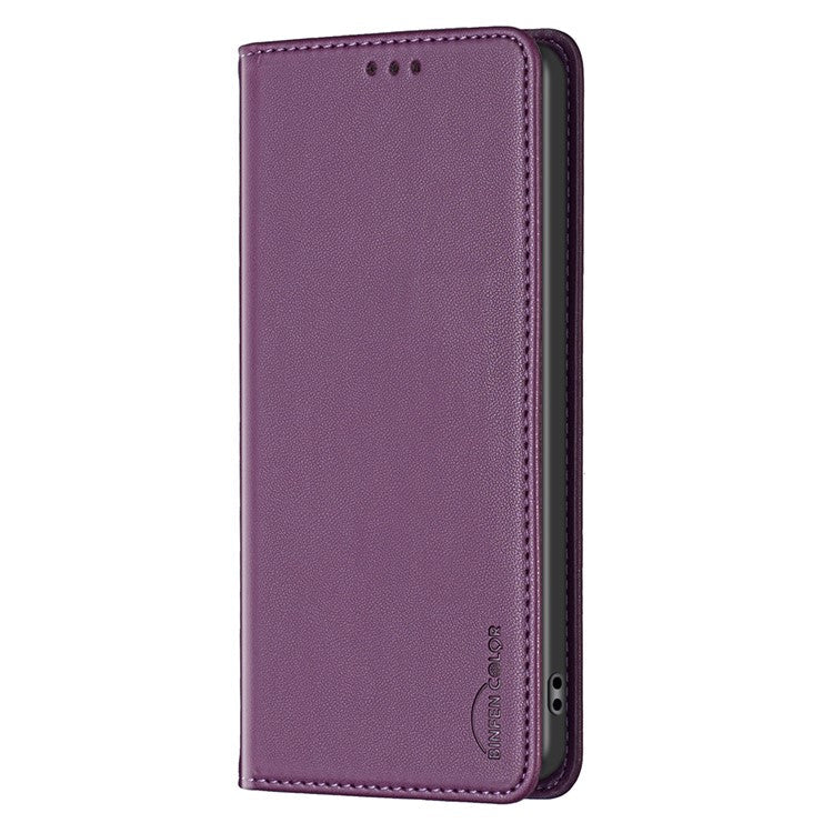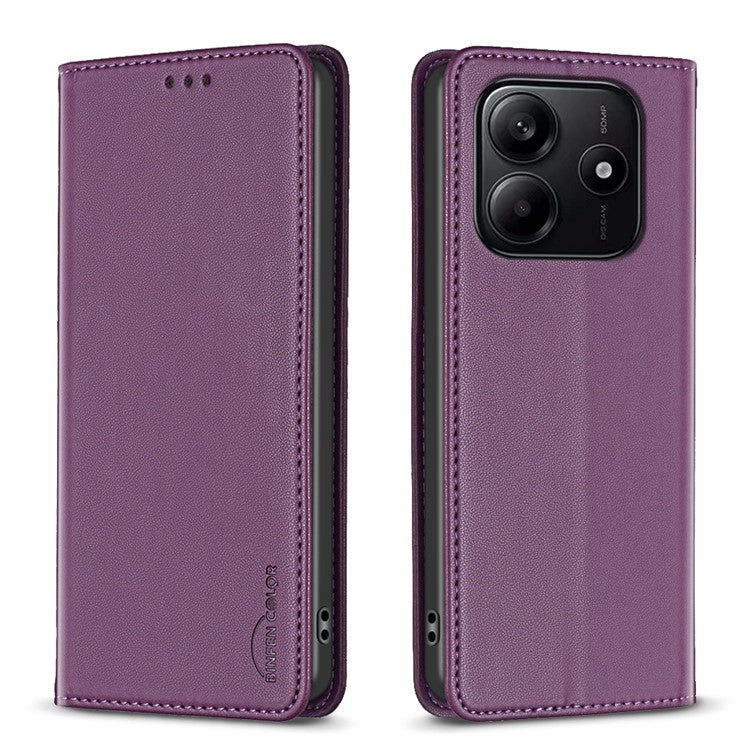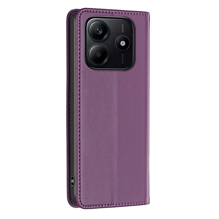 BINFEN COLOR BF18 For Xiaomi Redmi Note 14 5G Leather Case Card Slots Phone Cover - Dark Purple