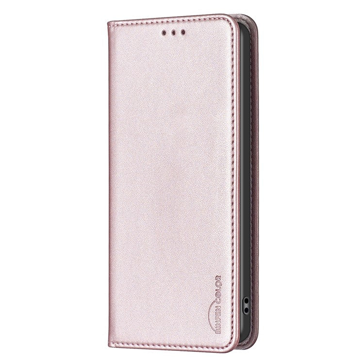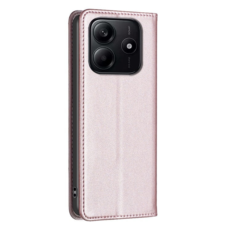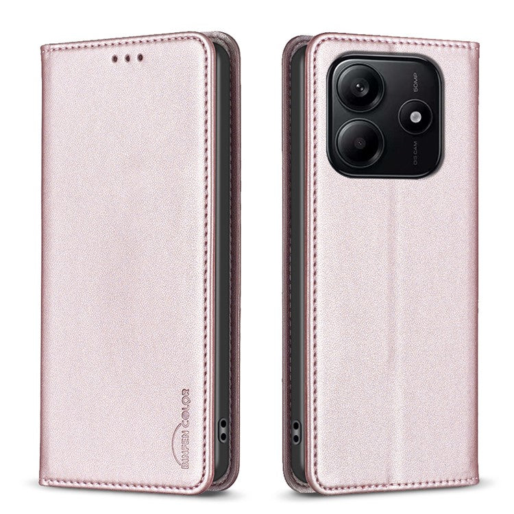 BINFEN COLOR BF18 For Xiaomi Redmi Note 14 5G Leather Case Card Slots Phone Cover - Rose Gold