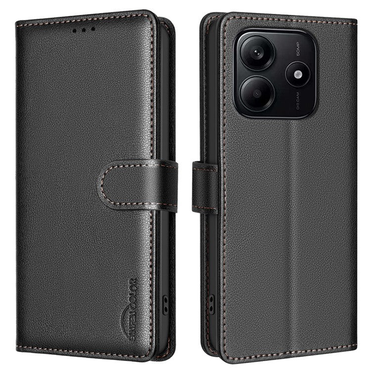 BINFEN COLOR BF32 For Xiaomi Redmi Note 14 5G Leather Case Wallet RFID Blocking Phone Cover - Black