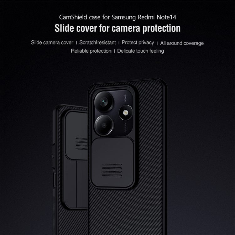 NILLKIN Camshield for Xiaomi Redmi Note 14 5G / 14 4G Case Hard PC Twill Texture Phone Cover with Slide Camera Lid - Black