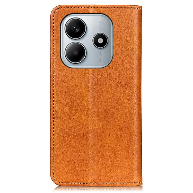 Split Leather Case for Xiaomi Redmi Note 14 5G Flip Wallet Phone Cover - Brown