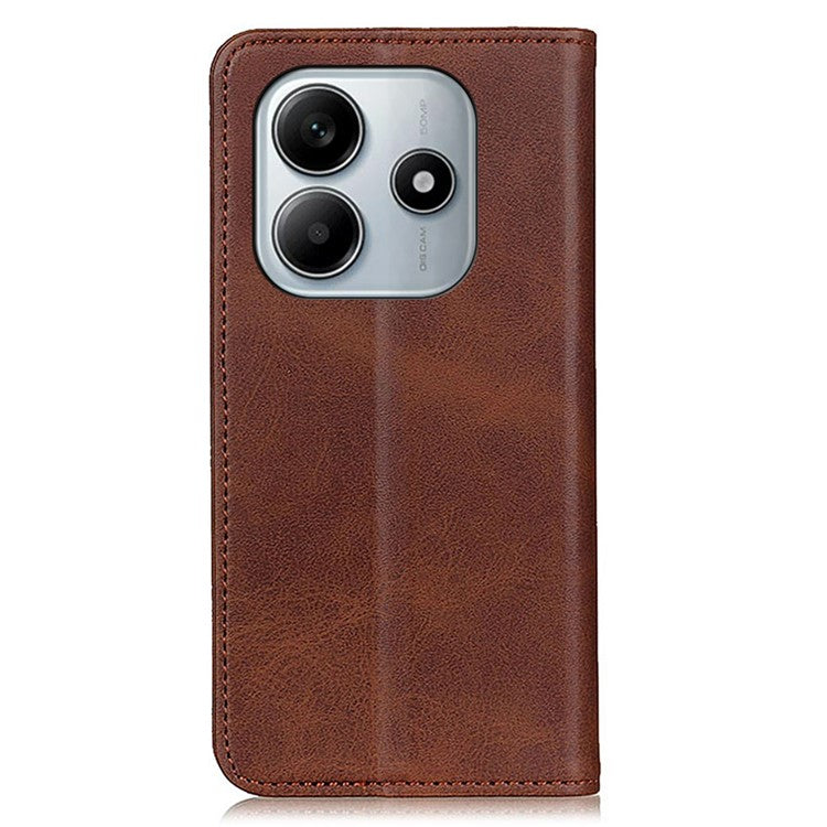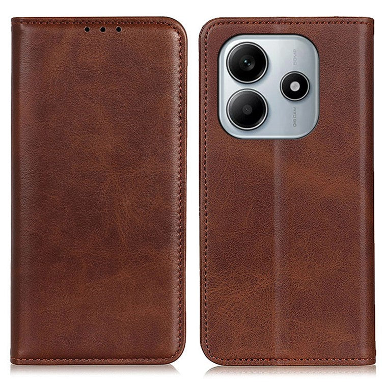 Split Leather Case for Xiaomi Redmi Note 14 5G Flip Wallet Phone Cover - Coffee