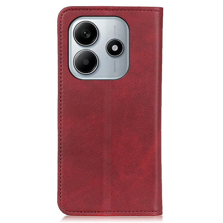 Split Leather Case for Xiaomi Redmi Note 14 5G Flip Wallet Phone Cover - Red