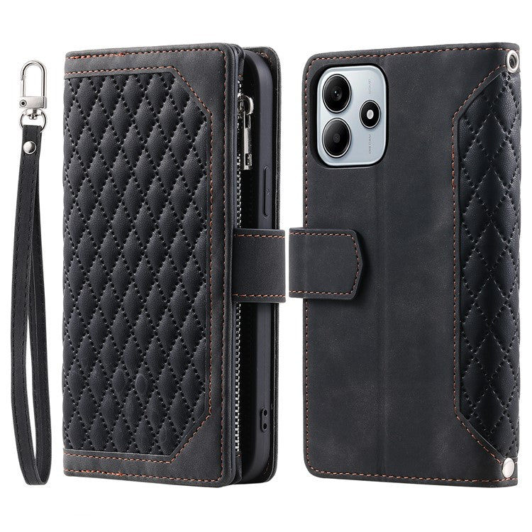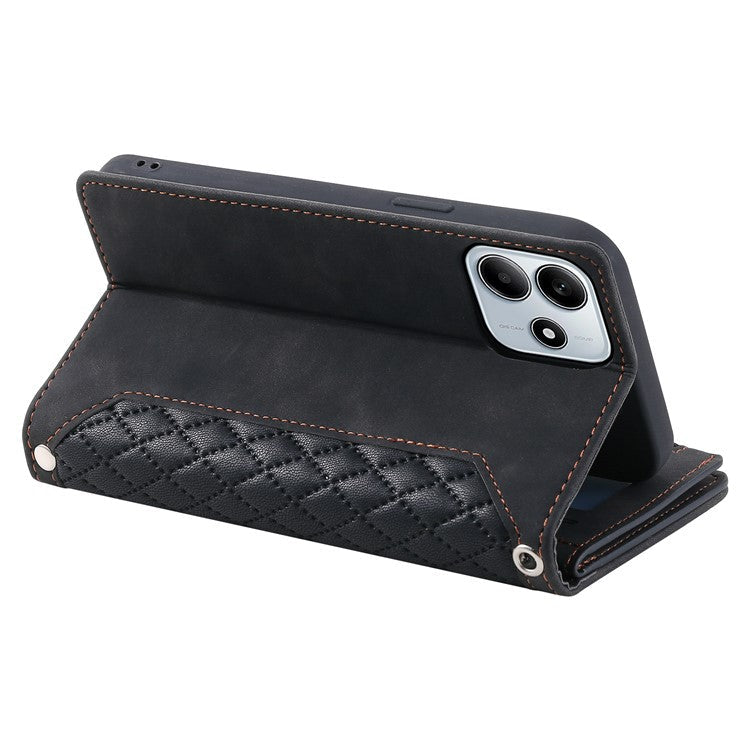 Style 005 For Xiaomi Redmi Note 14 5G Wallet Case Rhombus Stitching Line PU Leather Phone Cover - Black