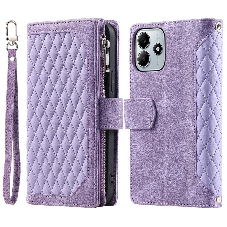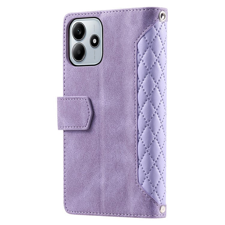 Style 005 For Xiaomi Redmi Note 14 5G Wallet Case Rhombus Stitching Line PU Leather Phone Cover - Purple