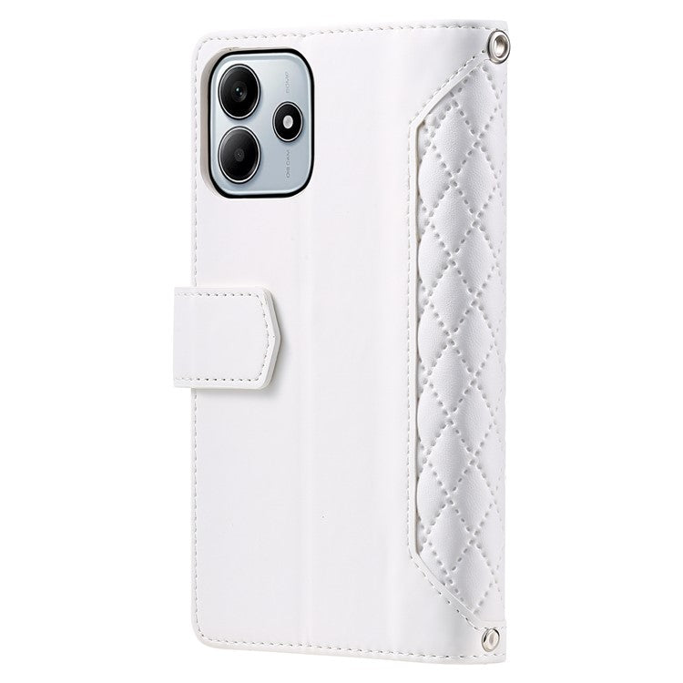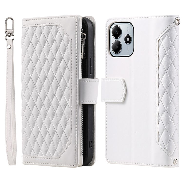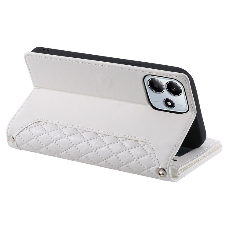 Style 005 For Xiaomi Redmi Note 14 5G Wallet Case Rhombus Stitching Line PU Leather Phone Cover - White