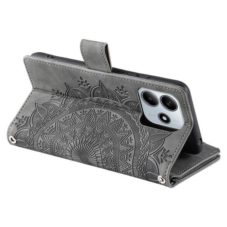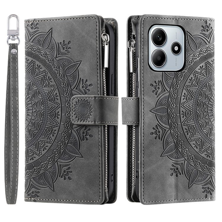 Style 006 For Xiaomi Redmi Note 14 5G Wallet Case PU Leather Phone Cover Mandala Flower Pattern - Grey