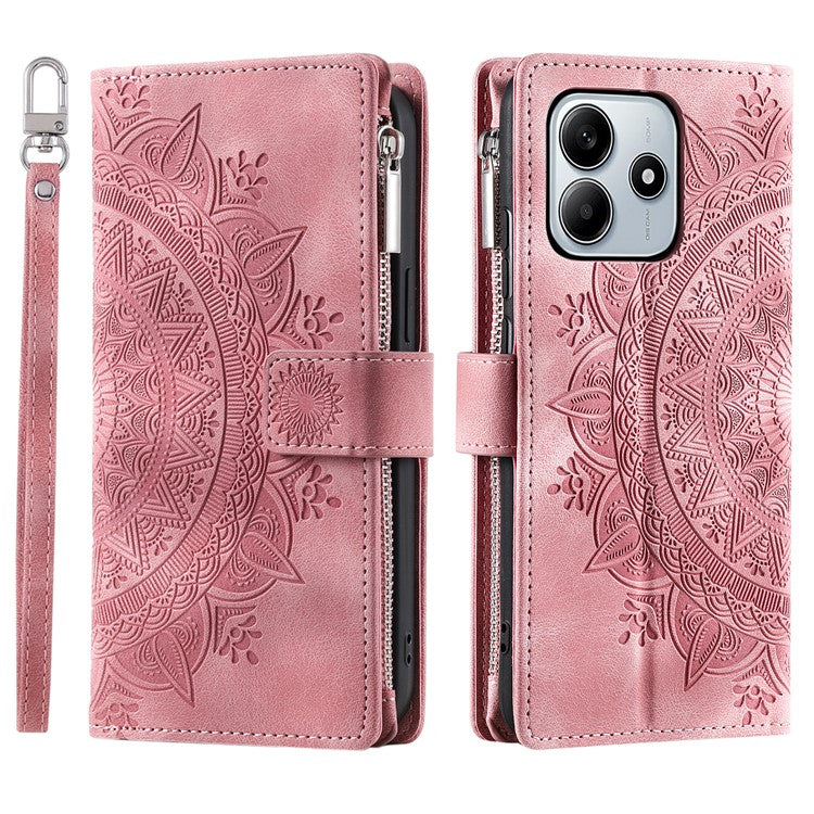 Style 006 For Xiaomi Redmi Note 14 5G Wallet Case PU Leather Phone Cover Mandala Flower Pattern - Rose Gold