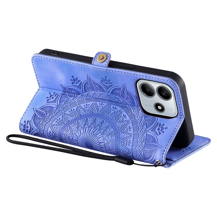 Style 016 For Xiaomi Redmi Note 14 5G Case Skin Feel Totem Imprinted Wallet Leather Phone Cover - Purple