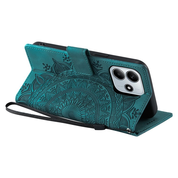 Style 018 For Xiaomi Redmi Note 14 5G Case Imprinted Totem Skin Feel Wallet Leather Phone Cover - Mint Green