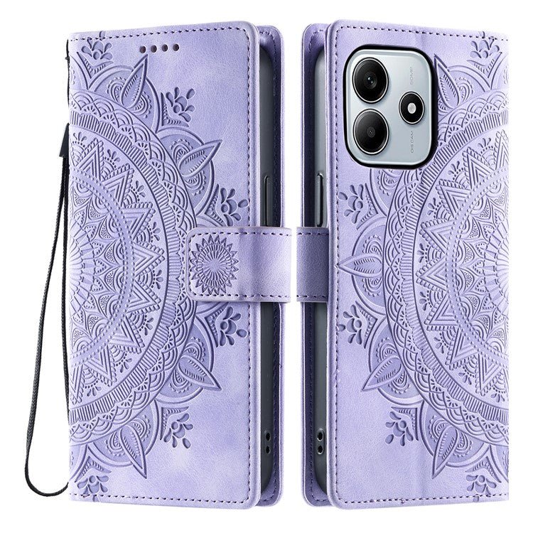 Style 018 For Xiaomi Redmi Note 14 5G Case Imprinted Totem Skin Feel Wallet Leather Phone Cover - Purple