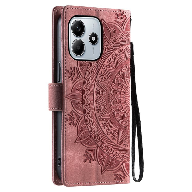 Style 018 For Xiaomi Redmi Note 14 5G Case Imprinted Totem Skin Feel Wallet Leather Phone Cover - Rose Gold