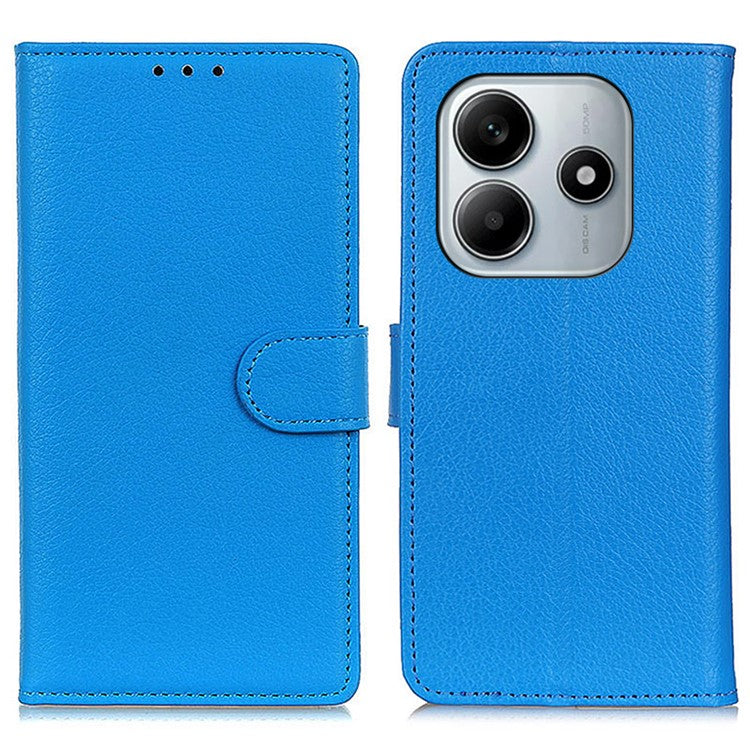 Wallet Case for Xiaomi Redmi Note 14 5G PU Leather Phone Cover Litchi Texture - Blue