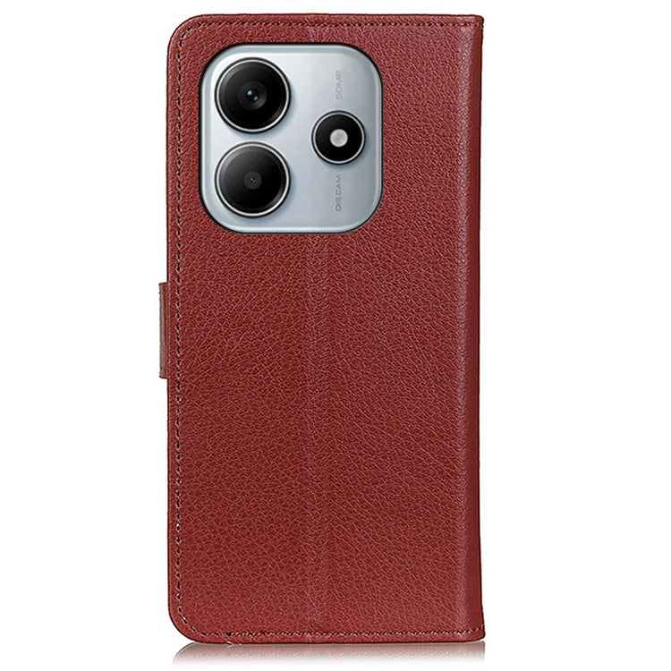 Wallet Case for Xiaomi Redmi Note 14 5G PU Leather Phone Cover Litchi Texture - Brown