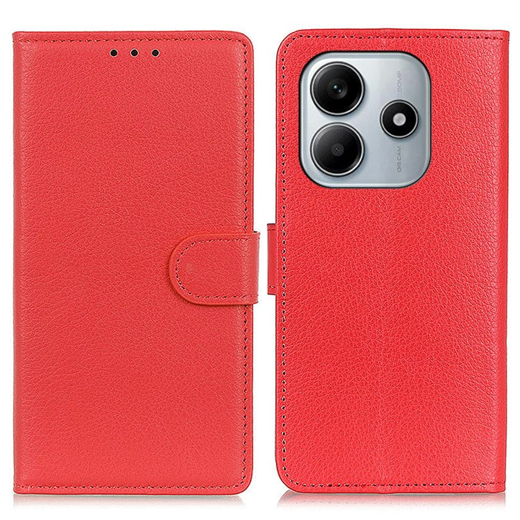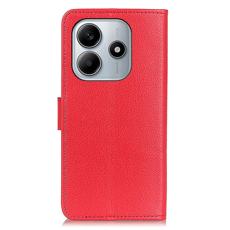 Wallet Case for Xiaomi Redmi Note 14 5G PU Leather Phone Cover Litchi Texture - Red