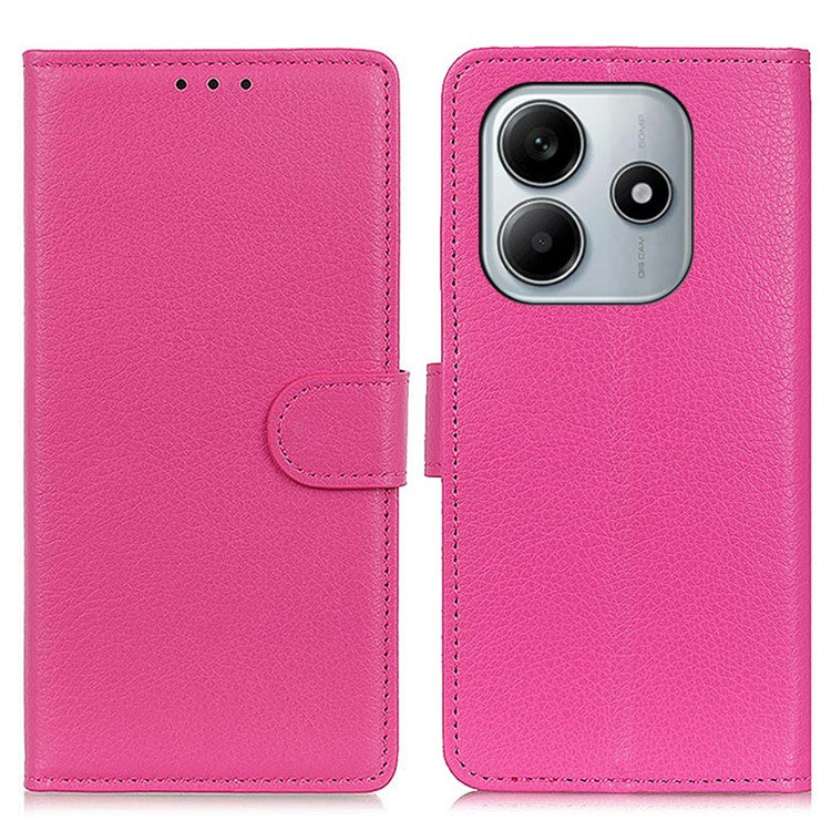 Wallet Case for Xiaomi Redmi Note 14 5G PU Leather Phone Cover Litchi Texture - Rose