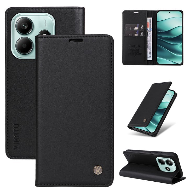 YIKATU YK-001 For Xiaomi Redmi Note 14 5G Case Stand Leather Phone Cover Strong Magnetic Closure - Black