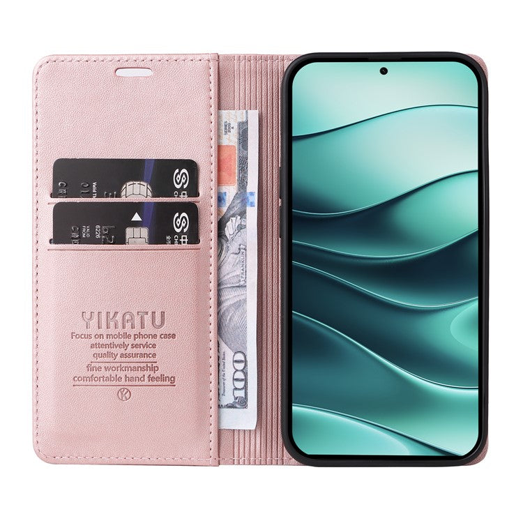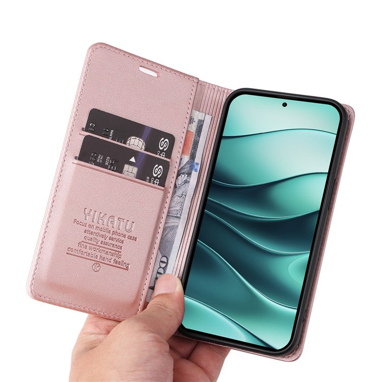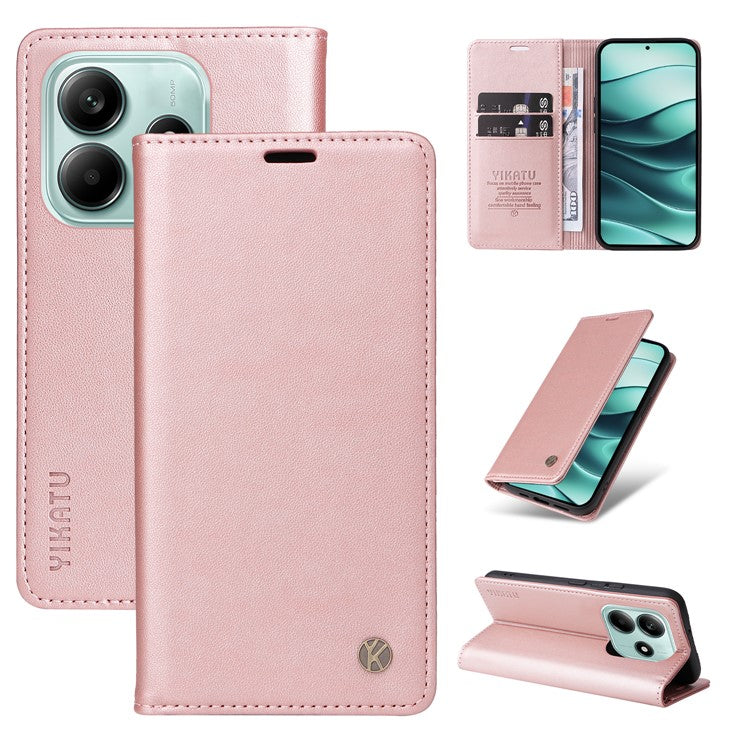 YIKATU YK-001 For Xiaomi Redmi Note 14 5G Case Stand Leather Phone Cover Strong Magnetic Closure - Rose Gold