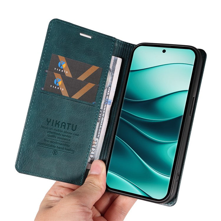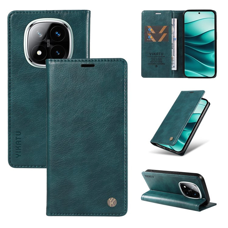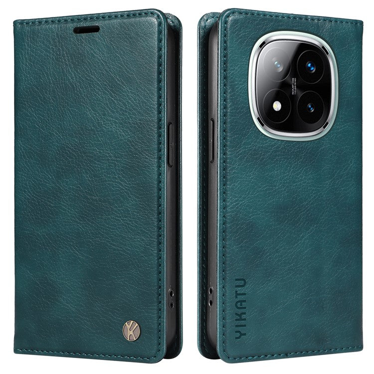 YIKATU YK-006 For Xiaomi Redmi Note 14 5G Case Magnetic Closure Leather Phone Cover Litchi Texture - Blue