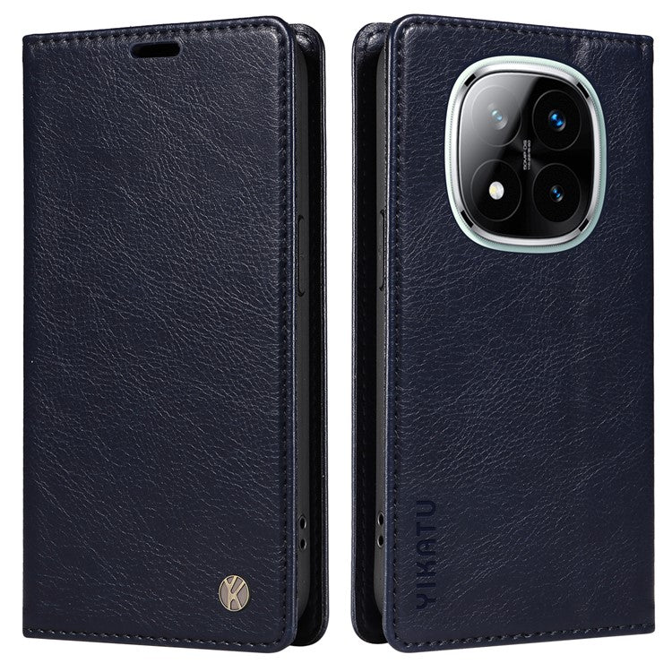 YIKATU YK-006 For Xiaomi Redmi Note 14 5G Case Magnetic Closure Leather Phone Cover Litchi Texture - Navy Blue