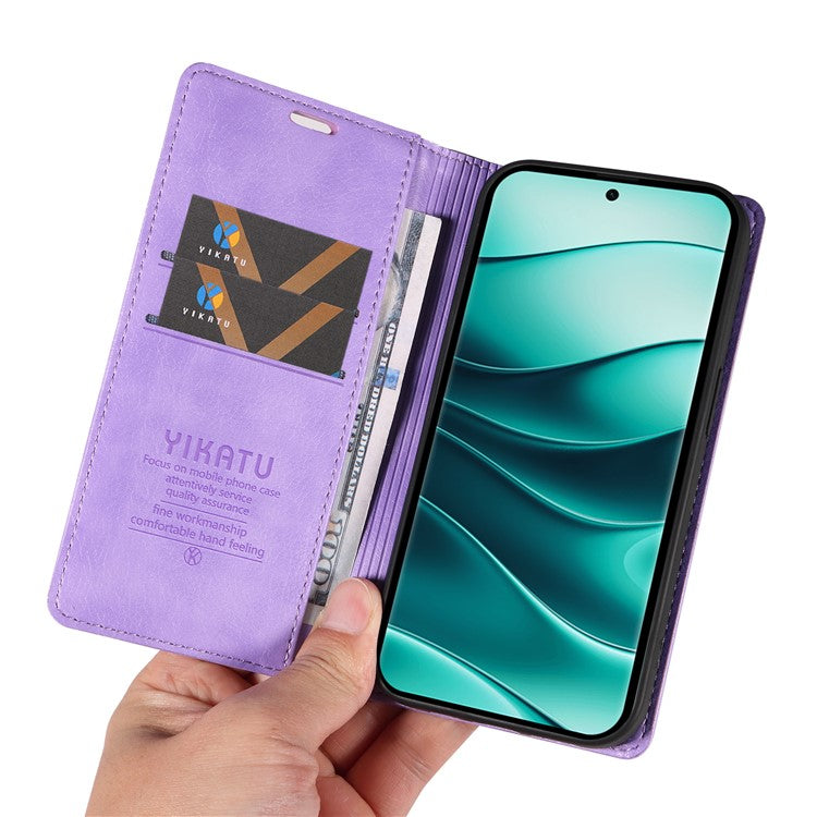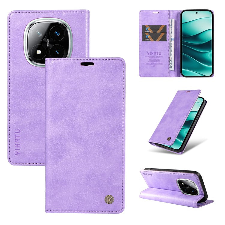 YIKATU YK-006 For Xiaomi Redmi Note 14 5G Case Magnetic Closure Leather Phone Cover Litchi Texture - Purple