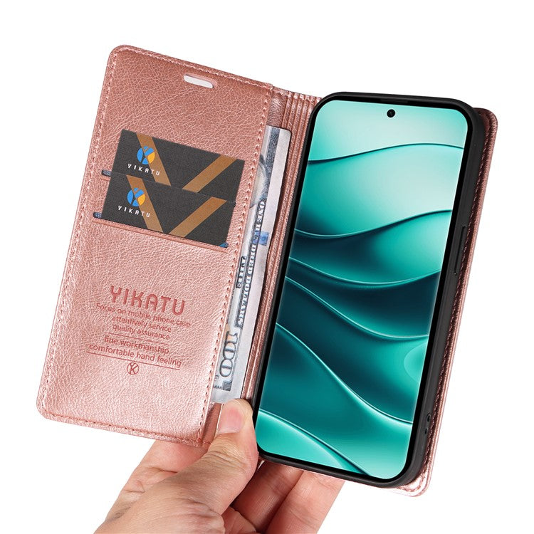 YIKATU YK-006 For Xiaomi Redmi Note 14 5G Case Magnetic Closure Leather Phone Cover Litchi Texture - Rose Gold