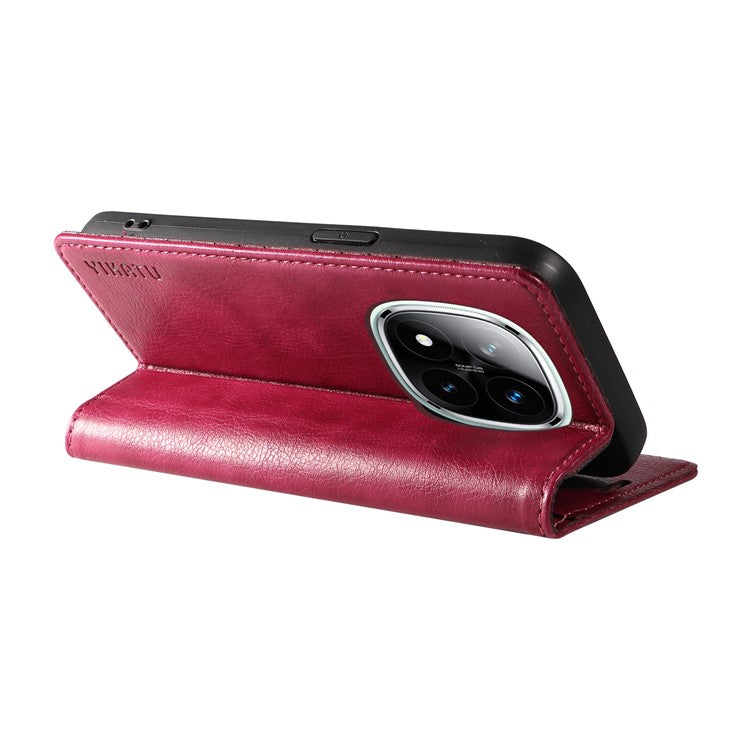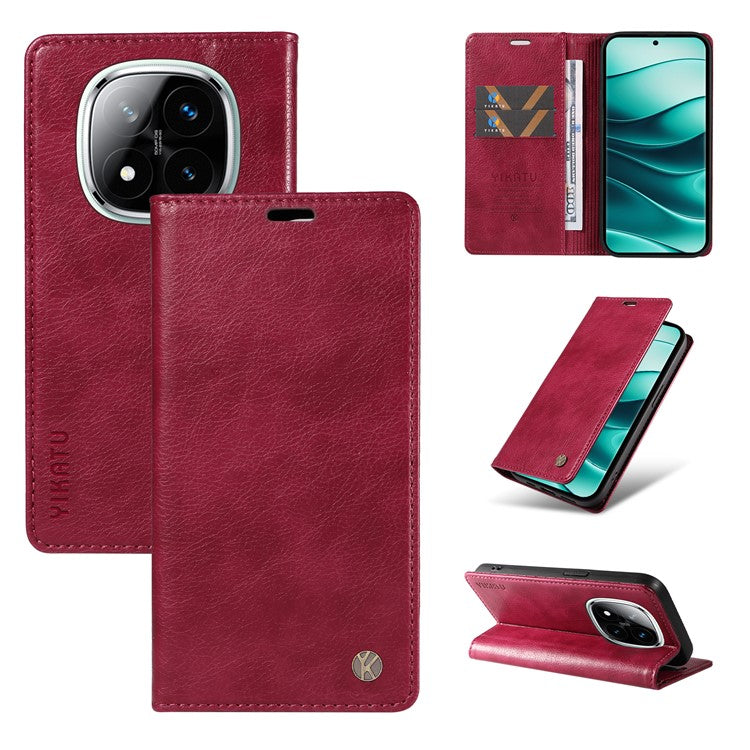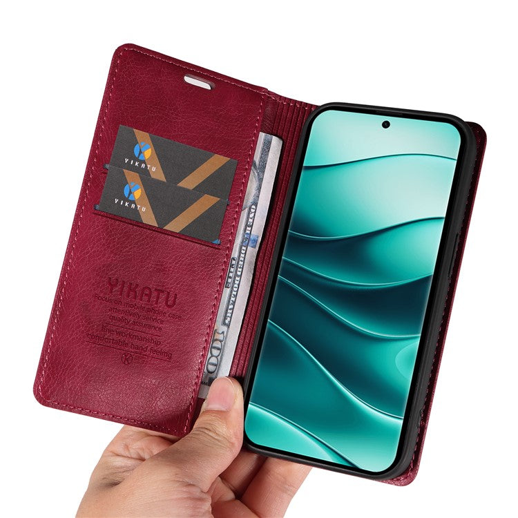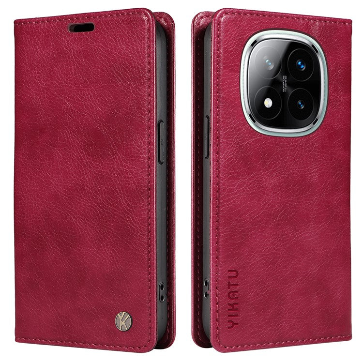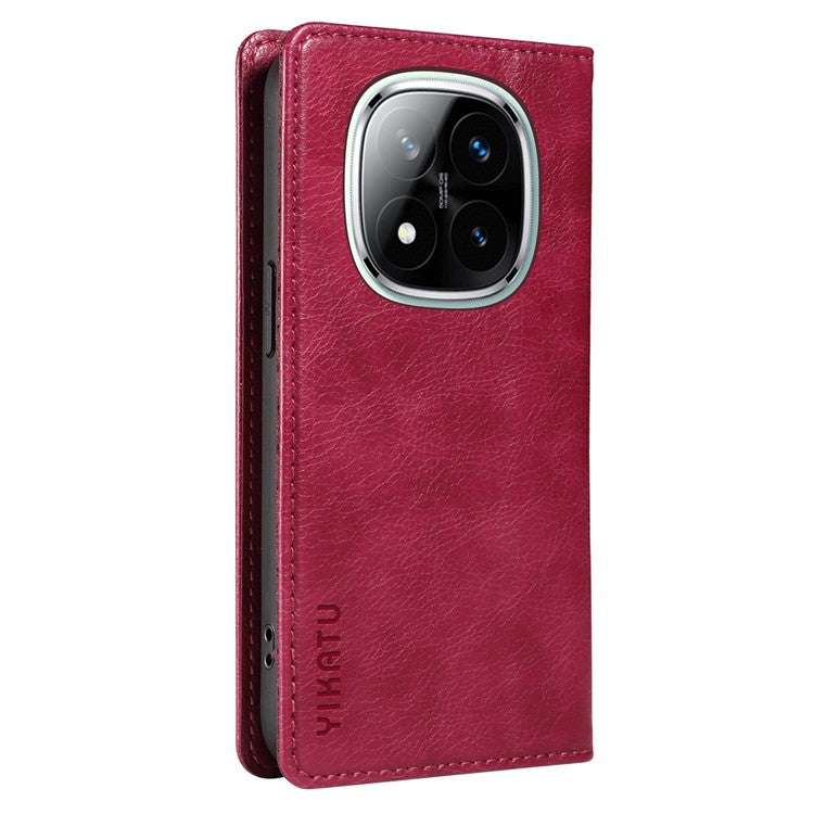 YIKATU YK-006 For Xiaomi Redmi Note 14 5G Case Magnetic Closure Leather Phone Cover Litchi Texture - Wine Red