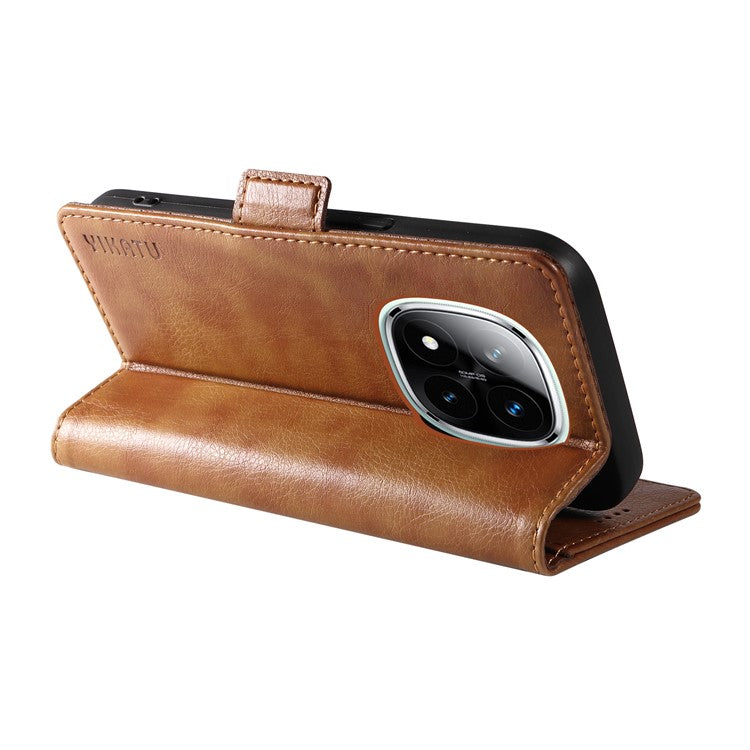 YIKATU YK-007 For Xiaomi Redmi Note 14 5G Case Side Buckle PU Leather Phone Cover Litchi Texture - Brown