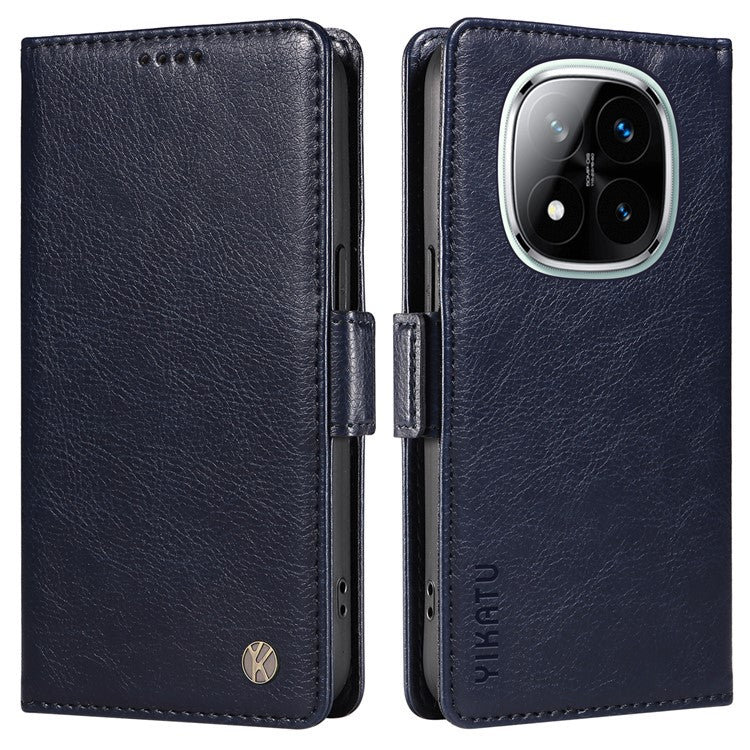YIKATU YK-007 For Xiaomi Redmi Note 14 5G Case Side Buckle PU Leather Phone Cover Litchi Texture - Navy Blue