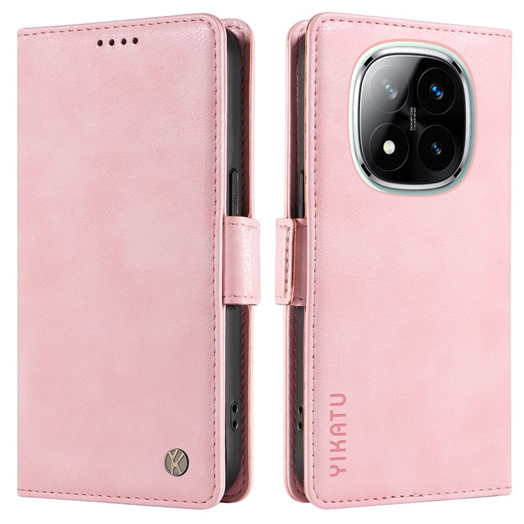 YIKATU YK-007 For Xiaomi Redmi Note 14 5G Case Side Buckle PU Leather Phone Cover Litchi Texture - Pink