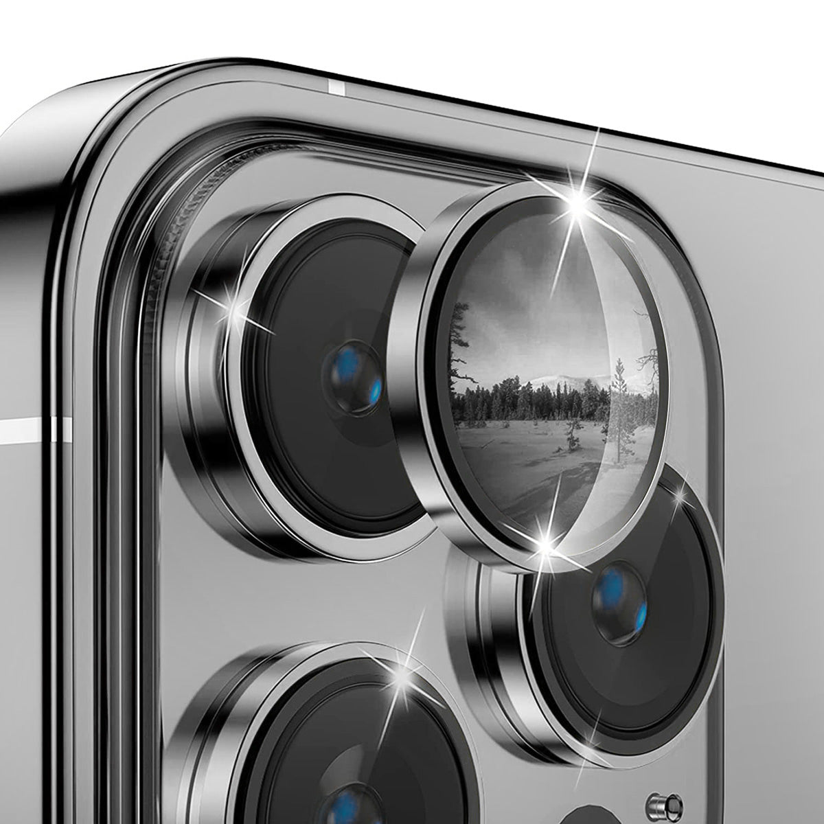 Uniqkart 1 Set For iPhone 15 Pro / 15 Pro Max AR Ultra Clear Camera Lens Protector Tempered Glass+Aluminum Alloy Lens Film - Grey
