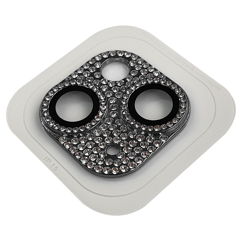Uniqkart For iPhone 15 / 15 Plus Crystal Clear Camera Lens Protector Aluminum Alloy + Tempered Glass Lens Film - Black