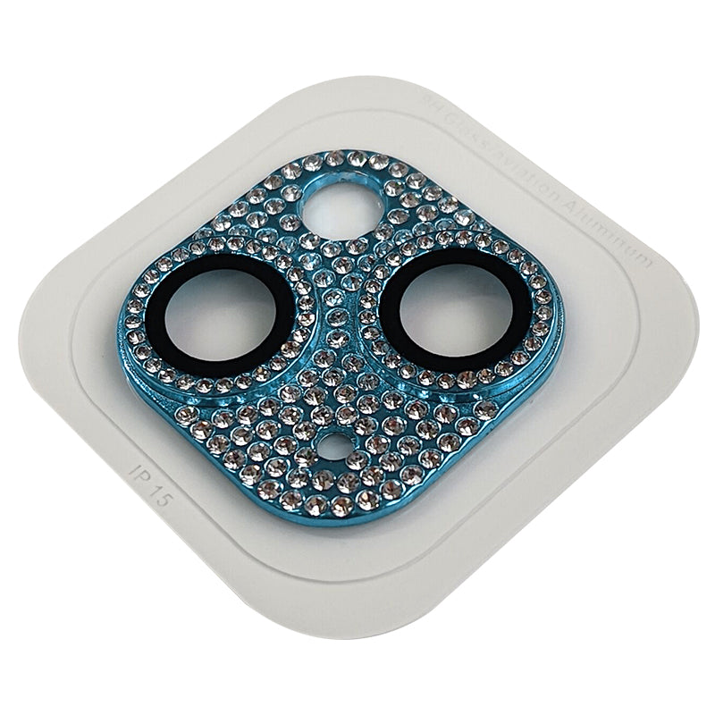Uniqkart For iPhone 15 / 15 Plus Crystal Clear Camera Lens Protector Aluminum Alloy + Tempered Glass Lens Film - Sky Blue