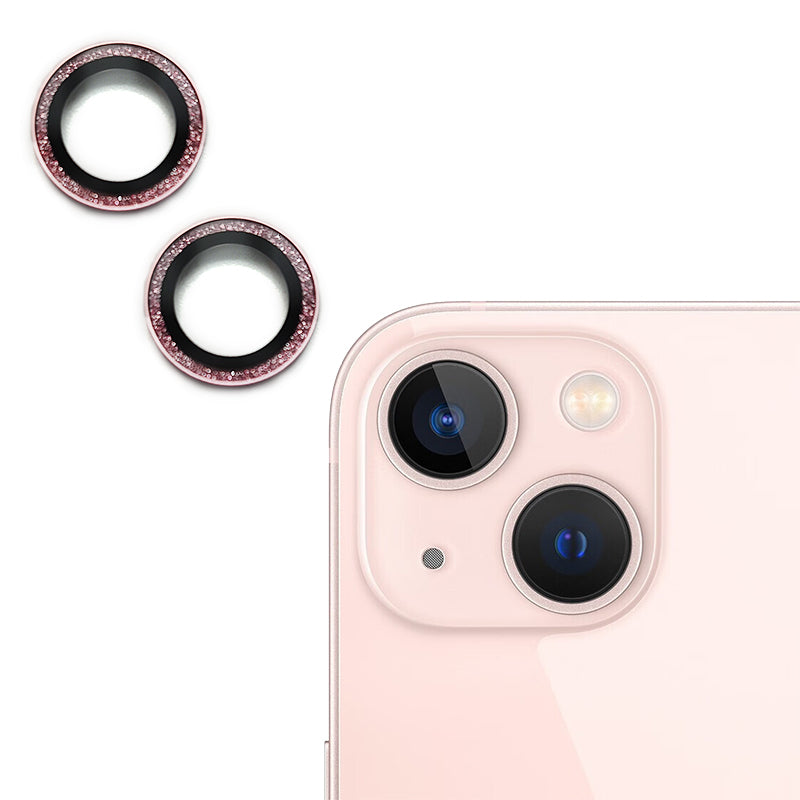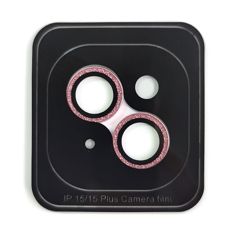 Uniqkart For iPhone 15 / 15 Plus Glitter Camera Lens Protector Tempered Glass AR Clear Back Lens Film - Pink